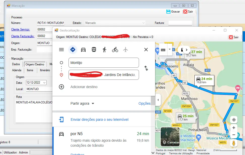 - Identificação da hora de fim de serviço como chegada ou regresso